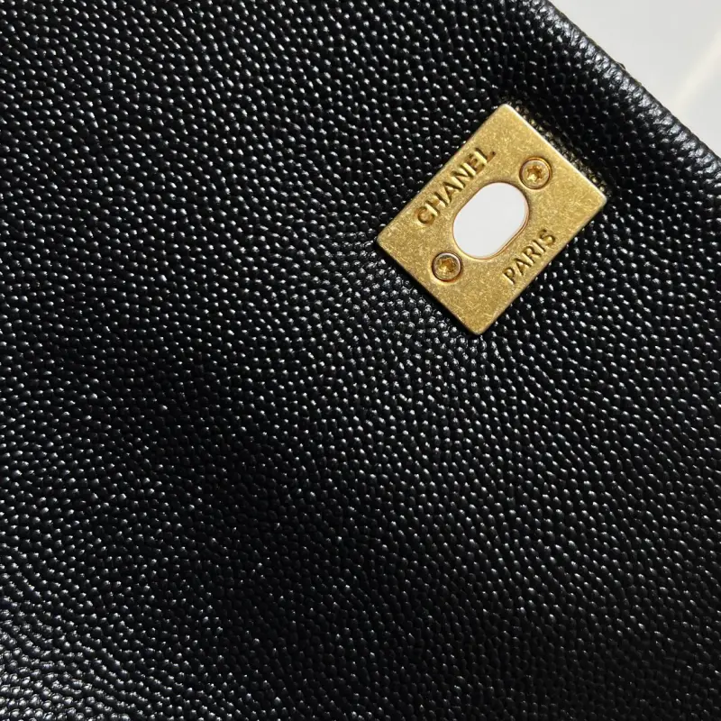 Coco handle-Medium 29cm-Lizard handle-Fine ball caviar leather-Black vintage gold buckle