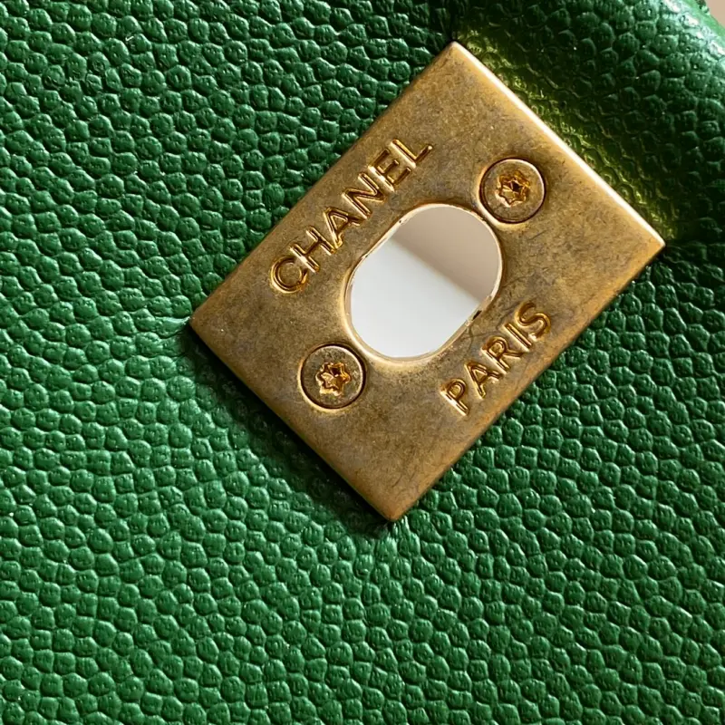 Coco handle-Medium 29cm-Lizard handle-Fine ball caviar leather-Green vintage gold buckle