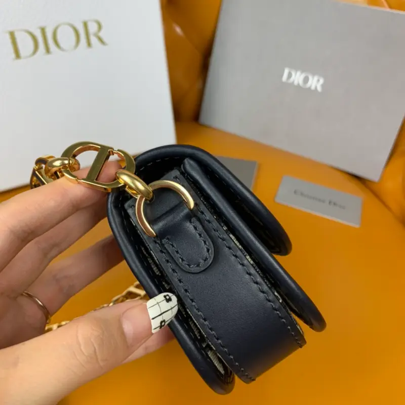 The newly launched Montaigne series 30 AVENUE mini is carefully crafted with blue Oblique printed fabric, with a rounded flap with exquisite curves and decorated with a vintage gold-finished metal CD buckle, inspired by the seal of Christian Dbag perfume bottles. The back is decorated with an embossed 30 Montaigne logo and paired with a classic chain composed of alternating gold-finished metal and enamel links in the same color as the leather. The pleated design is spacious and the silhouette is exquisite. It can be carried by hand, on the shoulder or cross-body. The small body of the bag has a large capacity. The CD connection at the chain is more refined. Size: 18*10*4.5