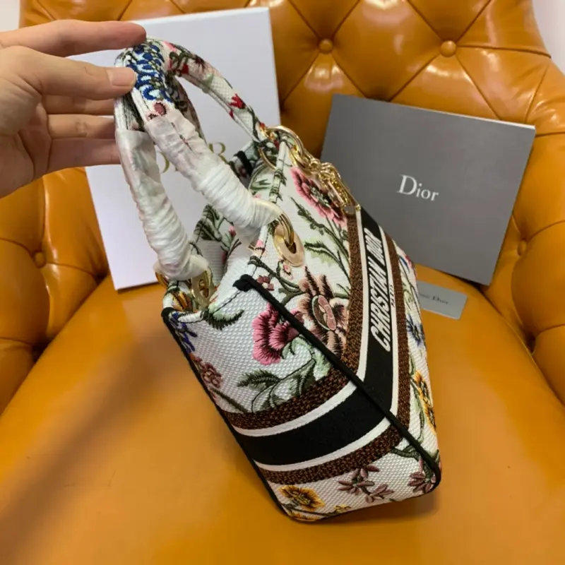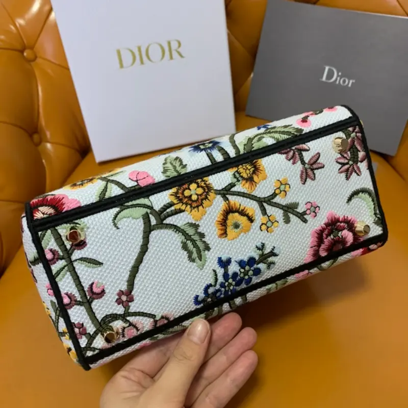 New colors arrive in the Lady Embroidery Collection. This latest collection features multi-colored Dbag Petites Fleurs embroidery throughout, creating a romantic and vibrant look that pays homage to Mr. Dbag’s love of flowers. This bag breaks new ground with a refreshingly wide shoulder strap, creating a harmonious look. Dimensions: 24*20*11cm