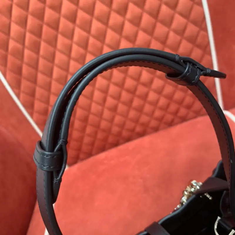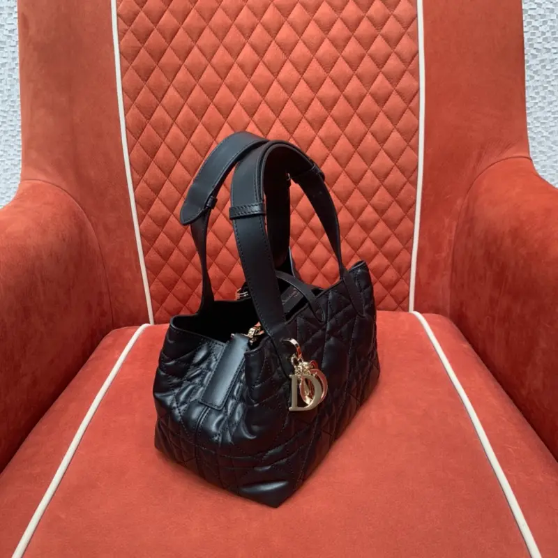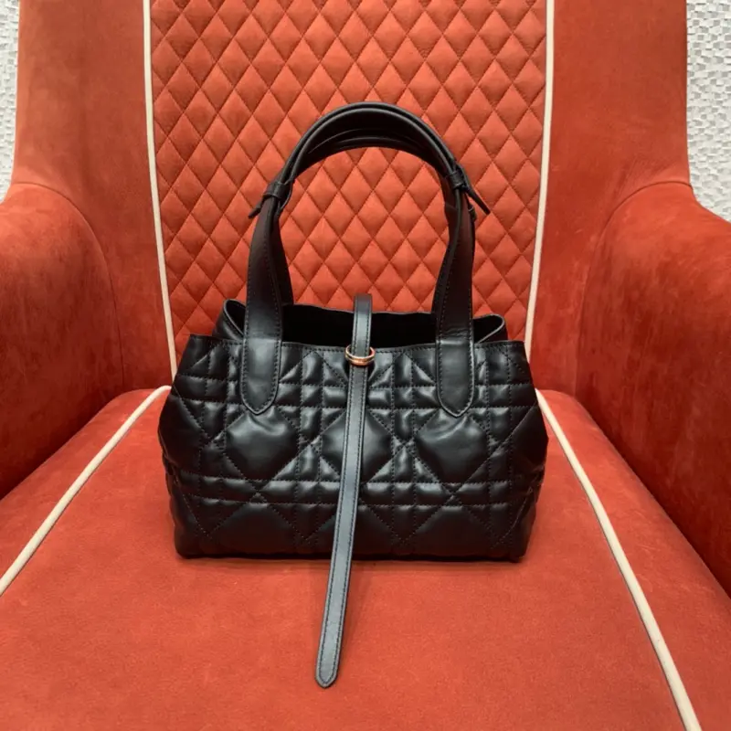 The new bucket bag is an instant hit, elegant and timeless. This small model features a top handle and an adjustable, detachable chain shoulder strap with a leather strap, allowing for easy, comfortable carry. The Dbag toujours handbag, crafted from cowhide with an oversized rattan pattern, is incredibly cool and practical, with spacious interior compartments and pouches to neatly organize your daily essentials. It features a leather tie closure for secure storage and a CDLock knob closure for adjustable sides for a more stylish look. Dimensions: 23x14x12