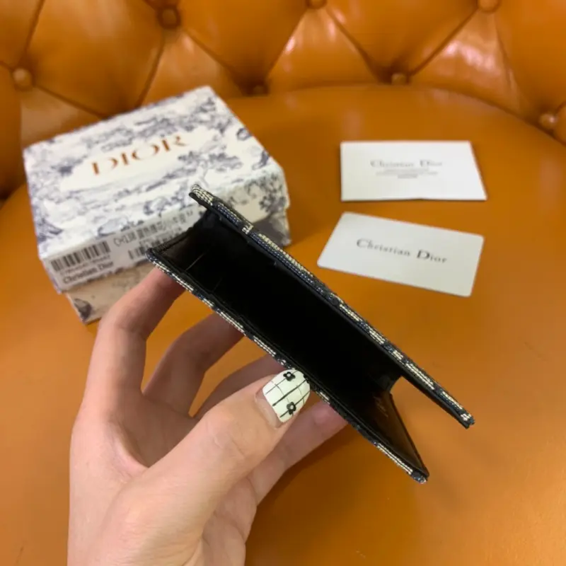 This bi-fold card holder is practical and refined, yet beautifully designed. Crafted from beige Oblique print fabric on the exterior and black calfskin leather on the interior, it showcases Dbag’s distinctive craftsmanship. Three card slots are located on each side, along with two compartments for cash and receipts. Elegant and stylish, it slips easily into your pocket. Dimensions: 8.2cm x 11.2cm