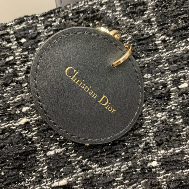 Small Book Tote Handbag “Black Cannage Tweed” The Book Tote handbag presented by Maria Grazia Chiuri embodies Dbag’s classic interpretation of elegance. It is decorated with textured black tweed embroidery all over, highlighting the mixed thread cannage pattern, and one handle is decorated with a light gold-finished metal Dbag charm. The interior is made of ultra-soft leather and has a zipper pocket and a slip pocket to properly store various daily necessities. The lightweight and practical small style is paired with an adjustable and detachable shoulder strap, showing Dbag’s exquisite craftsmanship and can be carried by hand or on the shoulder. Dimensions: 26.5x 21 x 14cm