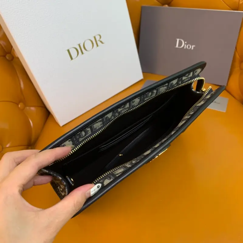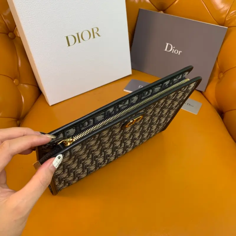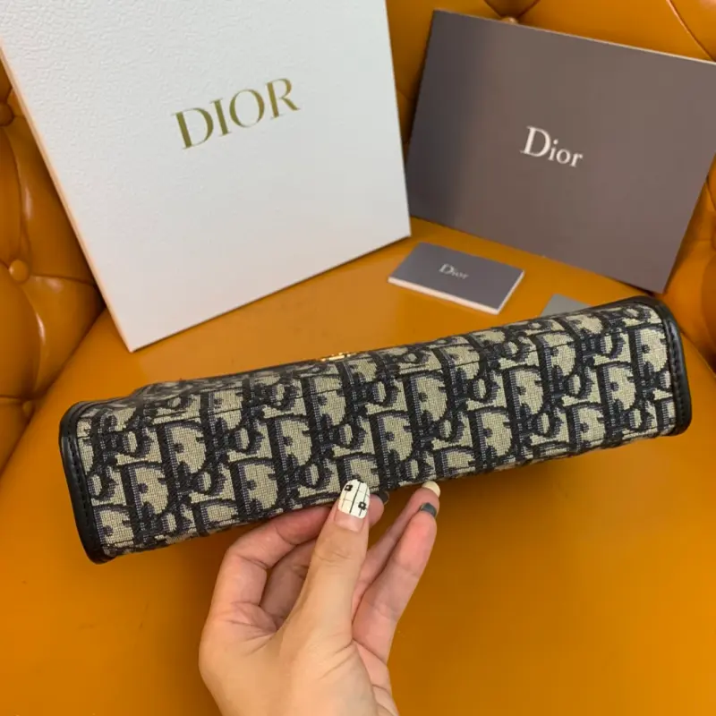 The 30 Montaigne clutch is a classic and elegant accessory. Crafted from blue Oblique print fabric, it features a CD logo on the front and features spacious interior compartments for everyday essentials. This medium-sized, structured clutch can be worn as a standalone clutch or slipped inside a Book Tote. Dimensions: 26 x 20 x 5.5 cm