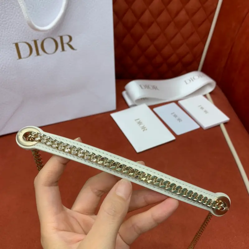 Arrived Lady light pink with creamy white rattan check original sheepskin mini three-grid with chain and light gold metal accessories long chain strap retro pink is really invincible beautiful high-end fairy style Lady Dbag retro pink Cannage rattan check stitching decoration detachable long chain strap accessories light gold hardware can be carried by hand, shoulder or crossbody size: 17*15*7cm