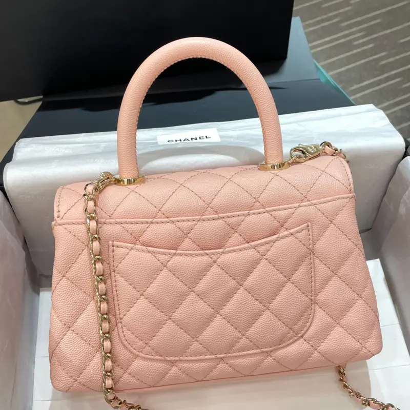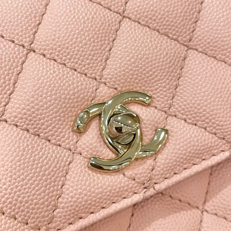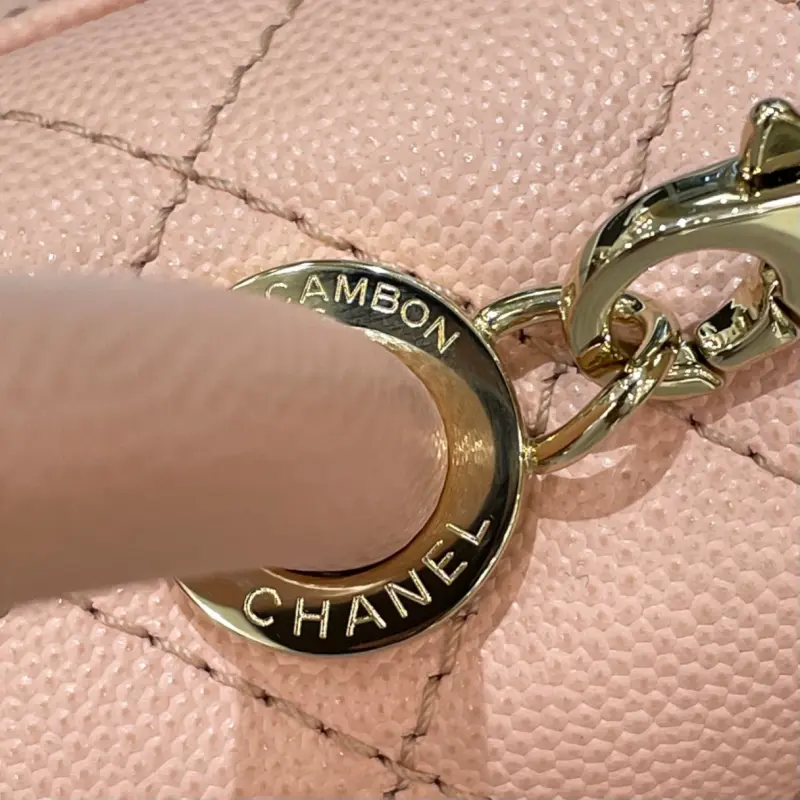 coco-Small 24cm-Cowhide Handle-Pink-Light Gold Buckle-Carved Edge