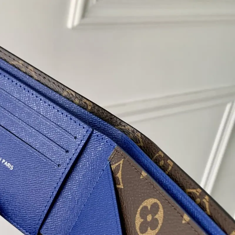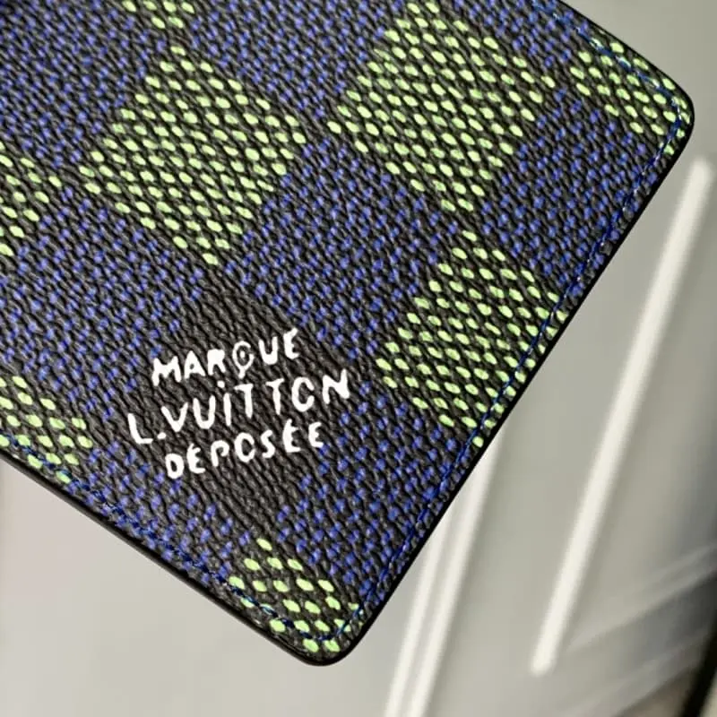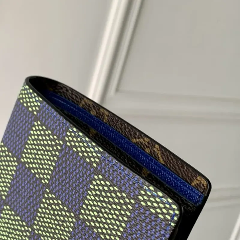 N00142 This Multiple wallet is made of turquoise Damier Heritage coated canvas and is embellished with the classic “Marque Lbag D??pos??e” logo. Practical small wallet with Monogram canvas lining and multiple compartments for business cards, receipts and tickets. 11.5 x 9 x 1.5 cm (length x height x width)