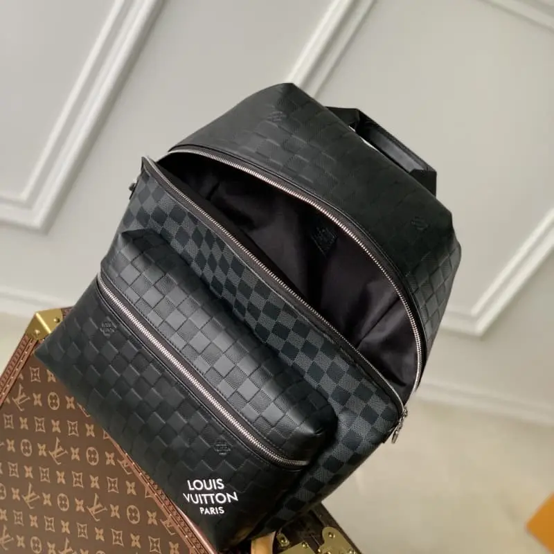N40436 DISCOVERY Small Backpack from the Heige Backpack Collection This Discovery Small Backpack is from the Damier2 collection and is made from Damier Infini leather and Damier Graphite canvas. The diagonal Lbag logo in the corner is a classic element of the Damier pattern and is embossed to create a rich texture. Detailed Features 30 x 40 x 20 cm