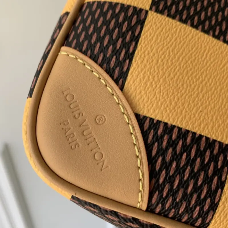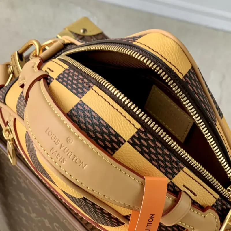 N40562 This Chess messenger bag inherits the brand’s classic Damier check and interprets the chic configuration with Damier Pop coated canvas created by creative director Pharrell Williams. Leather trim, reinforced corners and top handles are the finishing touches. The removable and adjustable shoulder strap allows for crossbody wear. 24 x 24 x 8 cm (length x height x width)