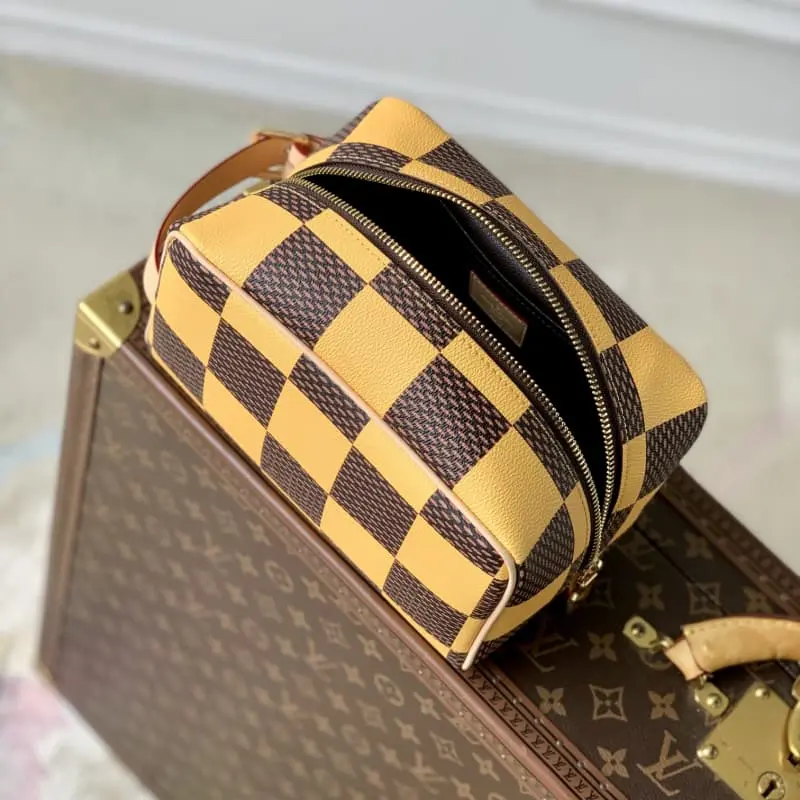 N40567 Yellow (Plaid) [LOCKER DOPP KIT Toiletry Bag] This Locker Dopp Kit toiletry bag uses Damier Pop coated canvas to renew the classic design and borrow the vintage Lbag logo to light up the distinctive Damier pattern square plaid with central closure and adjustable side handles. Size: 23 x 13 x 12 cm