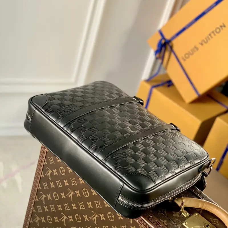 N45288 Sirius briefcase is made of Damier Infini Onyx cowhide leather. It has a slim design with a wide mouth for easy access to the items inside. The detachable and adjustable shoulder strap is suitable for shoulder or crossbody. The leather nameplate fixed to the D-ring adds ingenuity. Dimensions: 35.0 x 27.0 x 7.0 cm (length x height x width)
