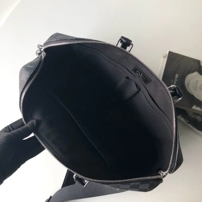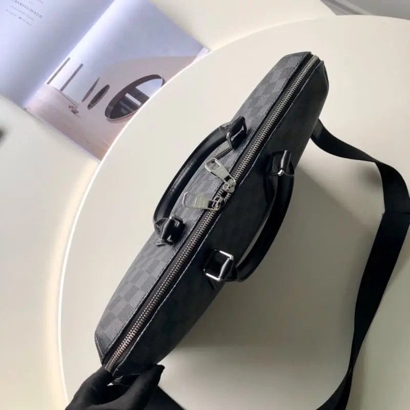 N48224 Porte-Documents Jour briefcase is made of the instantly recognisable Damier Cobalt canvas. Compared to the Porte-Documents Voyage travel bag, this briefcase is more casual and compact. It is very practical for urban men and can be carried in many ways. The front pocket of the bag is closed with a zipper and can accommodate a 15-inch laptop. Dimensions: 37.0x 28.0x 6.0 cm