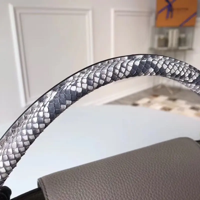 N91711Lbag Capucines medium handbag imported genuine snakeskin is now available. The Capucines medium handbag is a perfect match for all styles from classic to avant-garde with its stylish mini size and trendy bright colors. This handbag is decorated with shiny palladium and is suitable for casual shoulder carry. Size: 36 x 23 x 14 cm Imported lychee grain cowhide with pure sheepskin lining Original hardware The best quality in the market!