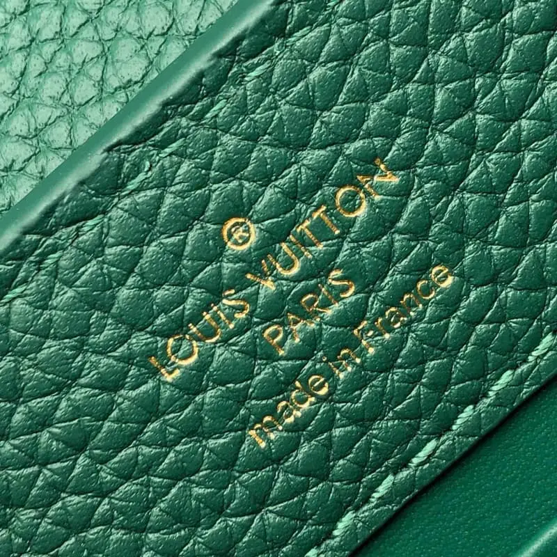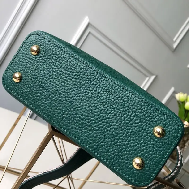 N95509 Green This Capucines handbag is made of python skin to embellish the timeless black Taurillon leather Exotic python pattern wrapped with Lu letter logo One corner handle is fixed with a ring and decorated with gold studs Imported lychee grain cowhide with pure fetal cowhide lining Original all-steel brushed hardware! Size 21x14x8cm