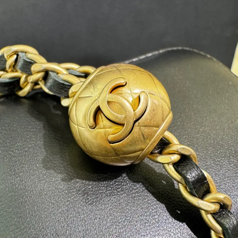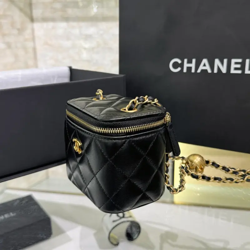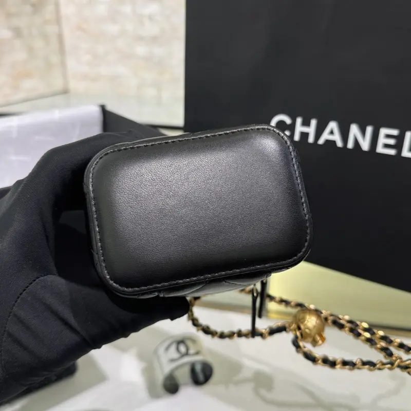 Single Gold Ball Lipstick Bag – Lambskin – Black Size: 8.5x11x7cm